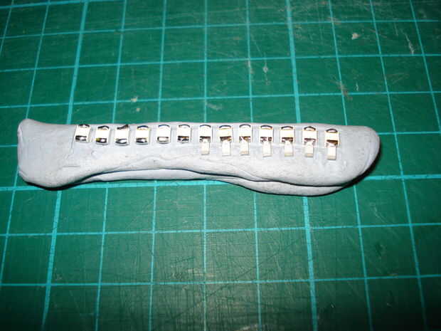 Tira del extremo del alambre kynar mientras está todavía en el rollo. Sostenga hasta la distancia deseada en el tablero y cortar un trozo a la longitud deseada. Sostenga el cable con los alicates