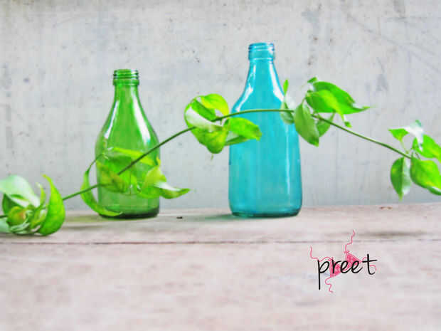 Paso 5: Ahora tomar todas las botellas y colocar sobre la mesa y adornarla con una sola flor o un pequeño juguete. Hay que ir!