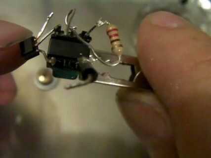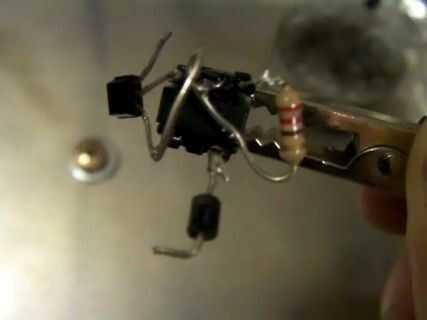 Una vez conectado, la pata larga de la resistencia debe ser doblado hacia adentro hacia el diodo. Que va a conectar las dos conexiones con un condensador.