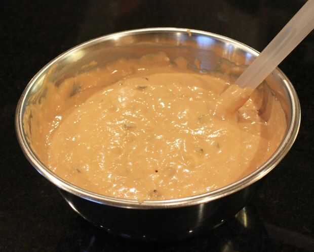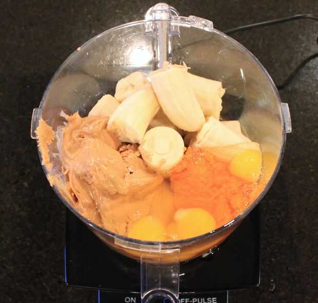 1. Ponga todos los ingredientes (excepto cualquier complementos) en un procesador de alimentos. Mezclar a alta hasta que la masa quede lisa (por lo menos 30 segundos). Usted tendrá que dejar al menos una vez para raspar hacia abajo los lados del tazón de fuente.