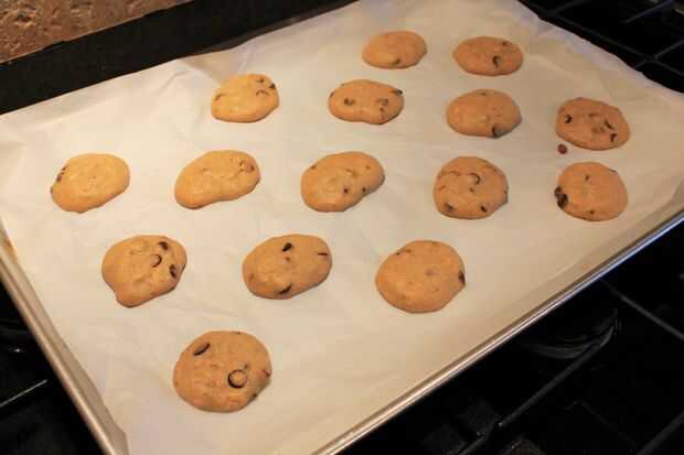 3. deje caer su masa/masa de galleta en un pergamino forrado hornear, dejando aproximadamente 2 pulgadas de espacio entre cada galleta.