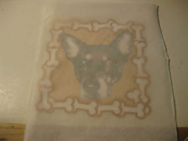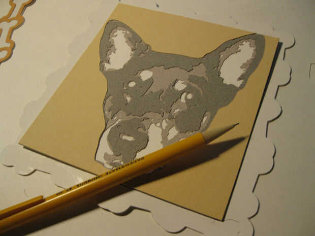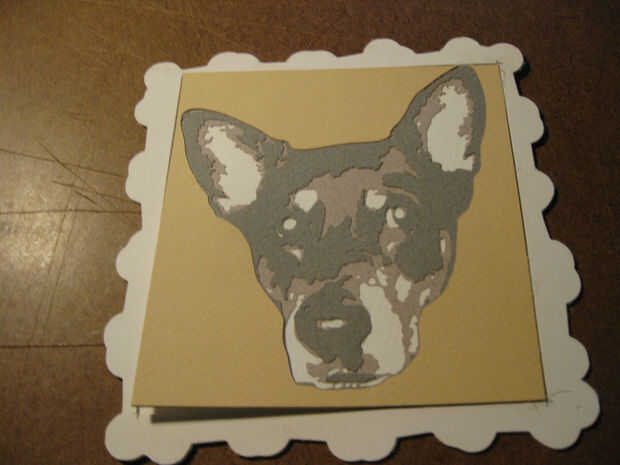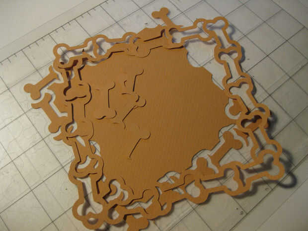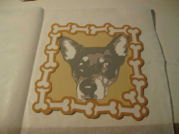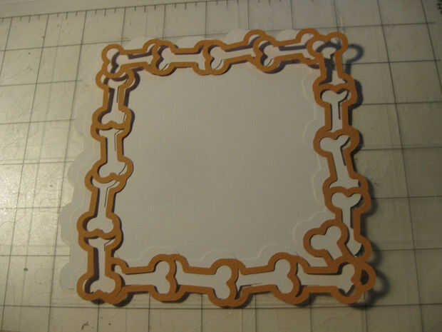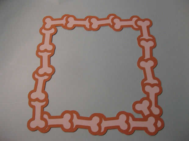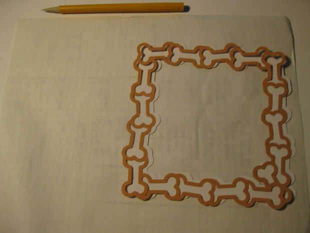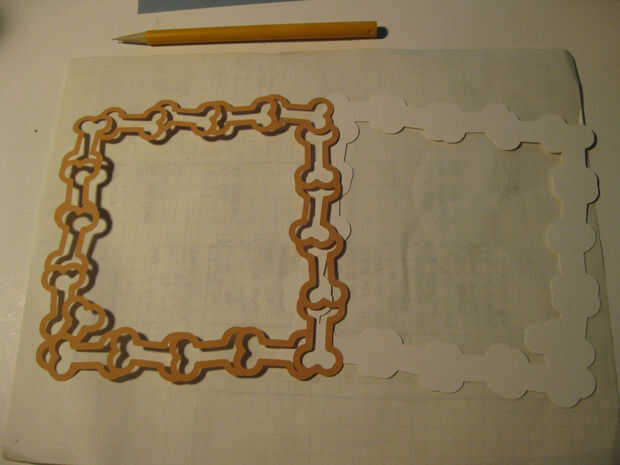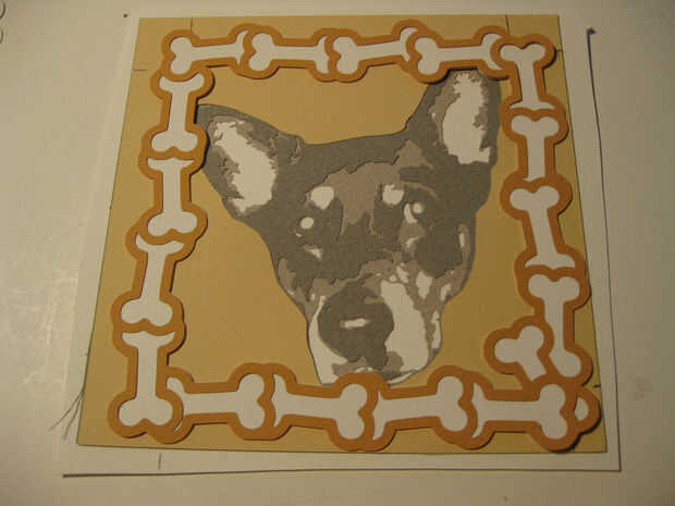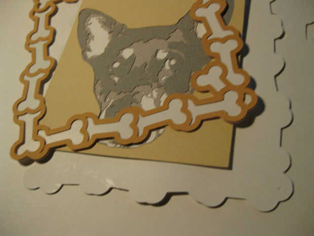 He creado la imagen de marco con una imagen de clip art de un hueso de perro gira alrededor y repite. El marco fue cortado de # 110 pintado y texturado acrílico papel, el papel de pastel # 98 y algunos trozos de cartulina. Asamblea era el mismo que el anterior paso-pegamento y presión en cada capa.