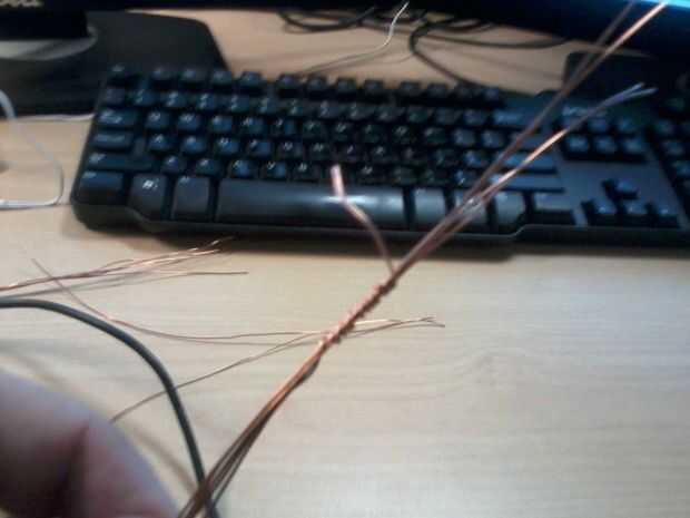 entonces empezar a envolver el otro cable.  Si usted se envuelve demasiado llevar, usted puede presionarlos juntos más
