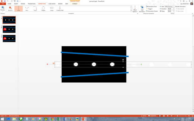 - Agregar animación personalizada (línea). En las nuevas versiones de Powerpoint puede ver un fantasma de la posición inicial, trate de coincidir con el espíritu con la posición original de otras pastillas (otra vez para evitar el salto cuando la animación se enlaza). La dirección debe ser hacia el extremo ancho de las líneas azules (hacia el esquiador).