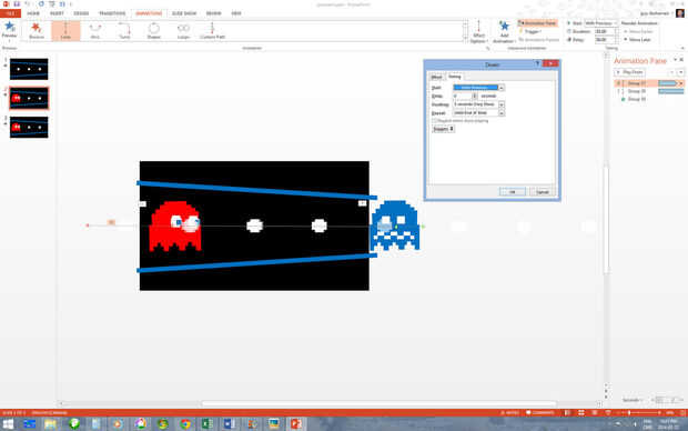 - Cambie la configuración de la animación: eliminar "arranque suave" y "liso extremo", velocidad "muy lento" y conjunto "repetir hasta el final de la diapositiva".