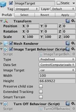Desde esa misma prefabricados carpeta, arrastre una Imagen objetivo a la escena. Con el objetivo de la imagen todavía seleccionada, desplácese hacia abajo en el Inspector y establecer el conjunto de datos (nombre de base de datos) , así como su Imagen objetivo. Ahora debe verse el blanco de la imagen (puede que necesite desplazarse para acercar/alejar), no olvides ajustar el punto de vista de ARCamera por lo que su destino es el centro en él.