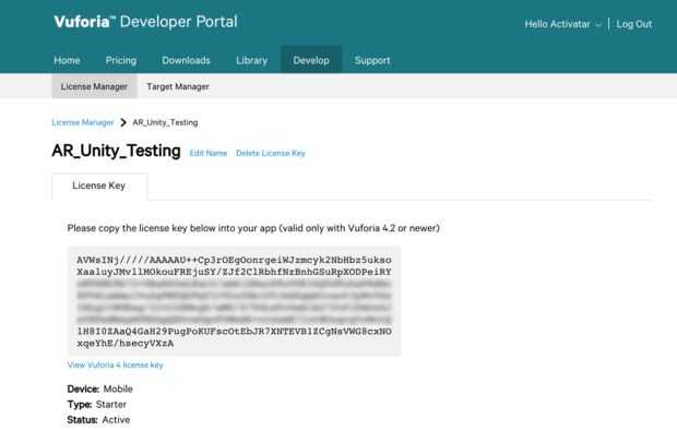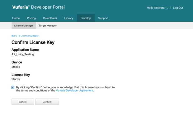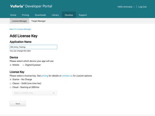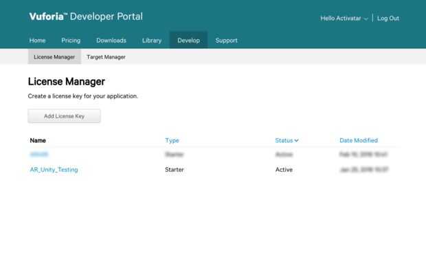 Usted necesitará establecer una licencia para cada aplicación va a hacer uso de Vuforia.