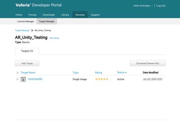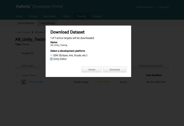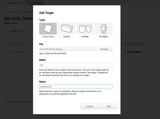 Para cada imagen o el objetivo que desea añadir y aumentar a usted necesitará agregar esa imagen al conjunto de datos que creamos en el sitio web de Vuforia.