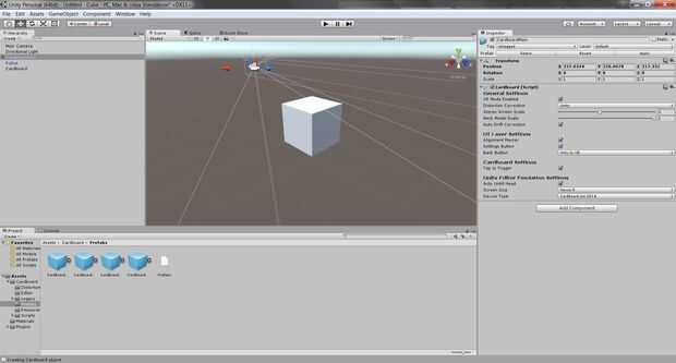 2. en la carpeta de cartón puede encontrar una carpeta llamada 'Prefabricados'. Abra esta carpeta y arrastre el objeto 'CardboardMain' en la escena.