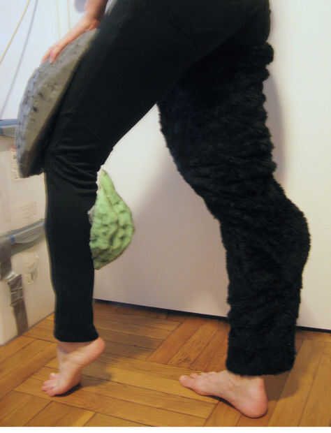 Cuando usted Levante las piernas sobre las almohadillas, ahora debe encaja perfectamente y ser capaces de ser sostenido por el elástico. Si el elástico o cualquier piel es todavía floja, continuar a tirar adentro y coser el cierre hasta que encajen bien.