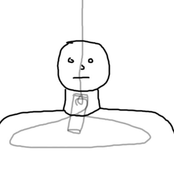 La cabeza fue unida relleno con periódico y luego metiendo un tubo de cartón y el torso. Una cuerda fue atada a la percha y la parte posterior de la cabeza la ataron a la. El cuello de la máscara fue metido en el cuello de la camisa.