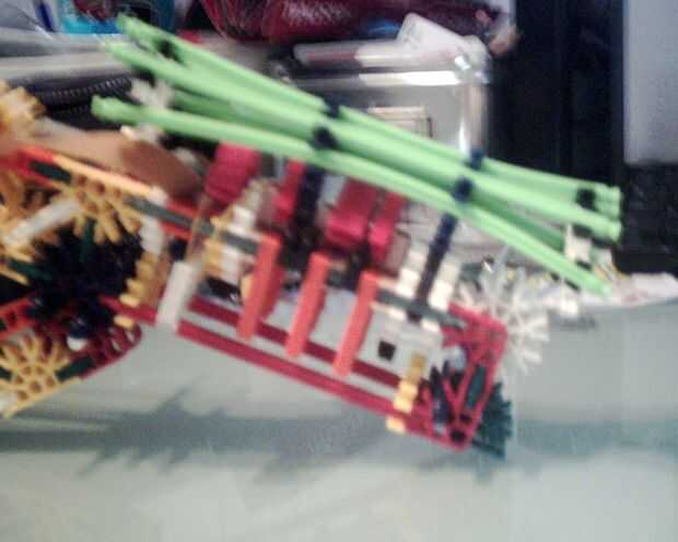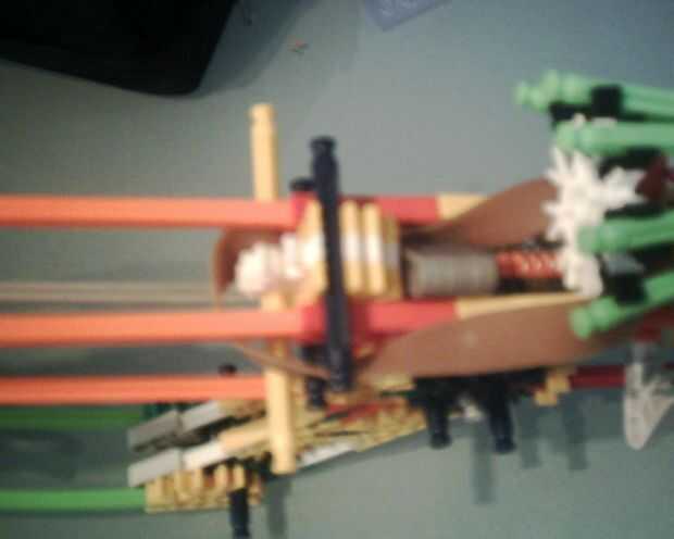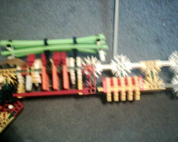 esta es el arma más poderosa de K'NEX creo que porque puede perforar 2 cerveza o COLA puede y destruir disco compacto fácilmente debido a la muy fuerte 4 gomas (yo uso 2 ligas diferentes) también incluye una gran revista para 5 K'NEX largo gris afila
