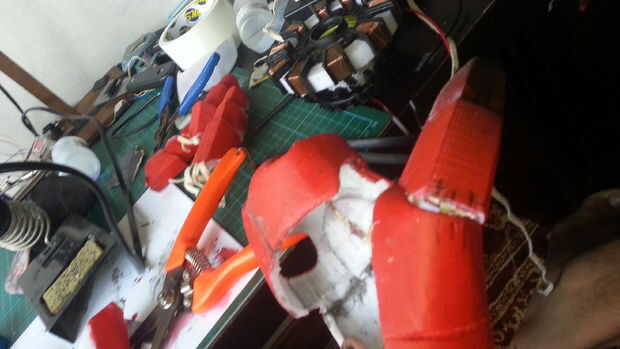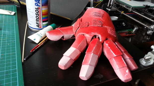 Pegué las piezas del guante con pegamento y una mezcla de epoxy para suavizar las articulaciones.