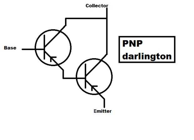¿Qué? Derecha, dos transistores, pegadas en una forma llamada un par de Darlington. Funcionan de la misma forma exacta como un transistor normal, solo, sino amplifican muchas muchas veces más. Un típico transistor Darlington, como un TIP127 el TIP122 son transistores que tienen ganancia de cerca de 1000 beta (la unidad de ganancia es la beta). Wut. Bien, esto significa que una uA 100 (nano amp) señal se producirá en acerca de... 100 mA, si no me equivoco. Esto significa que usted puede hacer algunas cosas realmente con de darlington. Puede hacer un dedo o toque el botón usar este, ya que su piel tiene corrientes muy pequeñas, y esa corriente es suficiente para dejar que la conducta de darlington. ¡ Bastante limpio ¿EH?