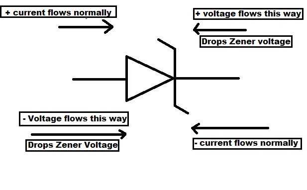 El efecto zener es una interesante propiedad del Zéner. Efectivamente, una vez alcanzada una cierta tensión el zener comienza a conducir en ambos sentidos, pero abrazaderas el voltaje hacia abajo duro para que la tensión de zener específicos. Piense en ello como un dispositivo de caída de tensión controlada, sin importar la corriente o voltaje a través de ella es, suelta siempre que la cantidad específica de tensión. Por ejemplo, un Diodo zener de 5,6 volt tiene 2 voltios que fluye del cátodo al ánodo. No realizará. Si el voltaje es llevado hasta, digamos, 6 voltios, entonces el Diodo zener comenzará a llevar a cabo y descenderá 5,6 volts de tensión, aunque sea 100 voltios, aún caerá 5,6 volts.