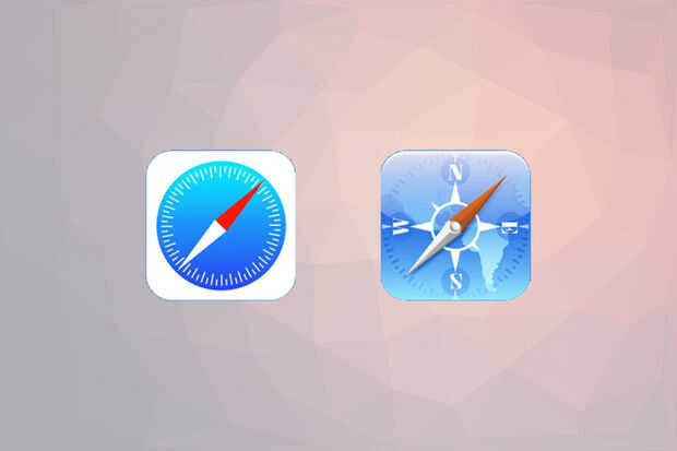 Como se puede ver aquí, cuando apple actualiza su software IOS, cambiaron todos los iconos de la aplicación. Mirando de izquierda a derecha, puede ver la simplicidad. Los marcadores direccionales fueron quitados, la aguja de la brújula es ahora sólo un diamante de dos tonos, y hay un borde blanco.