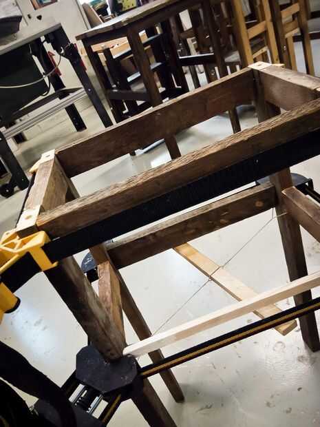 Agregar el pegamento en los orificios, de los tacos y en ambas superficies, sólo la cantidad correcta, usted will aprender it después de algunos intentos. Luego coloque las piezas en contacto.