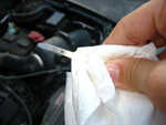 ![]() | 2. Limpie la varilla de medición y volver al vehículo Como conduces el vehículo, el aceite puede moverse dentro de la reserva y le impide obtener una lectura correcta al examinar inicialmente la varilla de medición. Utilice un trapo o toalla limpia para limpiar la varilla de medición y volver al vehículo. |