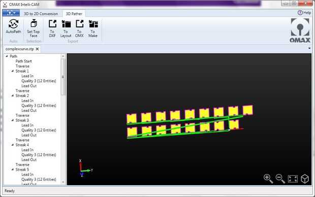 Por lo tanto, salvar a DXF si desea tener una copia de seguridad o para utilizar diseño de OMAX en otra máquina. De lo contrario, "Enviar a disposición" del golpe y vamos a continuar en nuestra aventura.