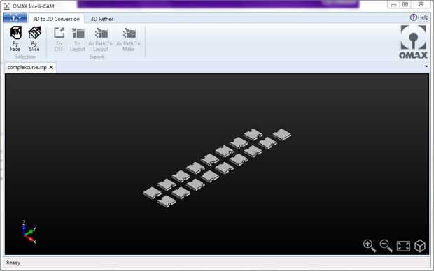 Si por alguna razón usted ha decidido ignorar la parte entera de 5 ejes de este tutorial y solo quiero usar IntelliCAM para ruta corta su eje 2, haga clic en la pestaña conversión 2D 3D. Esto permitirá seleccionar caras o rebanadas para cortar y luego exportar a cualquier diseño o directamente en el hacer, con caminos prediseñados. Todos los cortes se supone que son 90 grados. Esto puede a veces le permiten omitir pasos de exportación/importación de modelo en diseño al hacer cortes de 2 ejes, aunque los caminos que IntelliCAM aún deben ser revisados y simulados para asegurarse de que están sanos antes de realmente ejecutar un corte.
