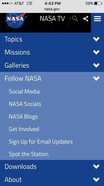 http://www.NASA.gov. Después de eso, encontrar la flecha en la esquina superior izquierda y que baja. Haga clic en la ficha de NASA siguen a continuación, haga clic en el lugar de la ficha de la estación. Después de eso, le llevará a otra página.