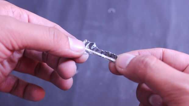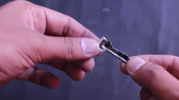 Por martilleo hacen la botella tapa plana y pegue la cinta y cortar la forma de clave en este caso obtendrá una llave pequeña por el tamaño de la tapa, pero sorprendentemente lo que observé fue que no se flexiona y trabajo perfectamente.