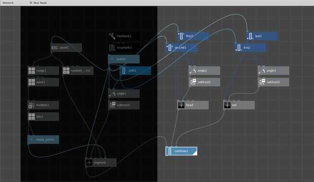 * Crear un nodo de ángulo. Conectarse last1 Point1 y last2 a punto2.