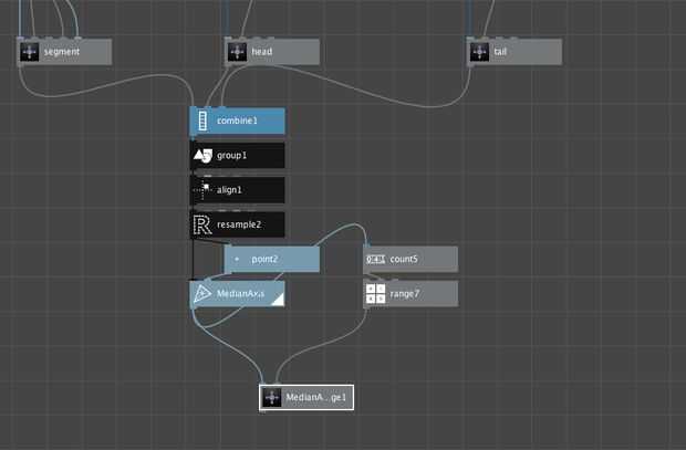 * Crear un nodo de centroide y cambió el nombre a eje de la mediana.