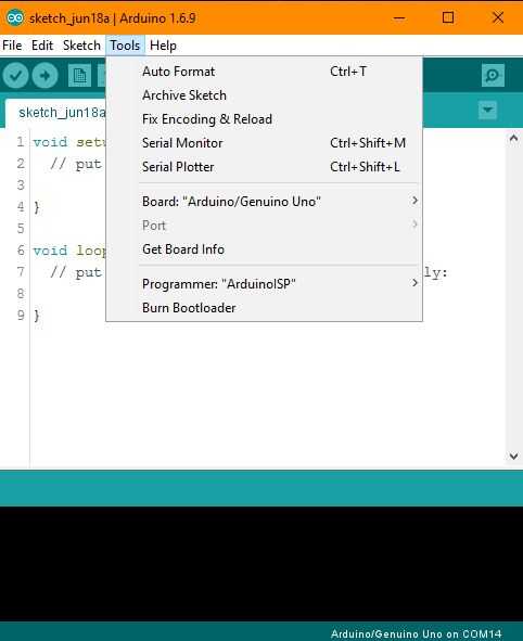 1: así que vaya al IDE de Arduino y seleccione el menú «Herramientas»