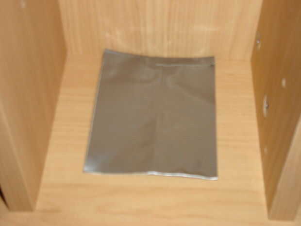 Este paso es bastante simple solo tome un trozo de conducto de cinta como desea, sobre el tamaño de un dólar, pero trabajos más pequeños bien. Se repite el proceso para la parte trasera para hacer la parte delantera. No te preocupes si tu cinta arrugas, como sigue siendo relativamente incluso. Si usted tiene cualquier cinta extra colgándose sólo envuélvalo alrededor. Después de ambas piezas, piezas de la línea los dos para arriba y utilizar una sola pieza de cinta para enlazar tres de los lados dejando uno de los lados largos abiertos en la parte superior.