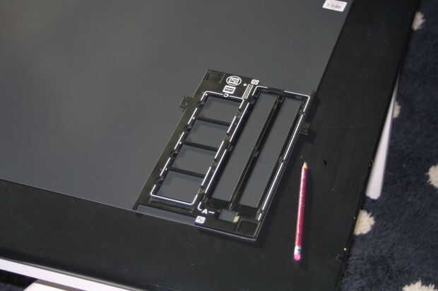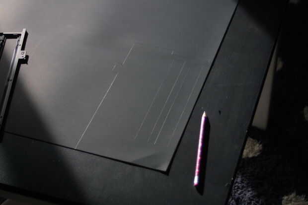 1. Coloque su titular negativo de OEM en la cartulina negra y trace una línea alrededor del exterior con un lápiz. Asegúrese de que incluir todas las fichas y guiones para el lado de 35mm. Puesto que nuestro sostenedor de la película será una cara, no tiene que preocuparse por la ficha y guiones que son para el lado de la diapositiva. Trazar los canales para la película de 35mm, así sólo para que tengas una idea donde el canal de la película de 110 debe ser.