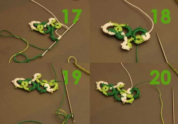 El collar es completado en el centro de trabajo, pero podríamos cambiar el patrón para terminar en un extremo. Por ahora, vamos a empezar este montaje de la primera pieza, que es muy útil para repasar y comprobar el rendimiento y el trabajo realizado correctamente todos los puntos necesarios y formas.