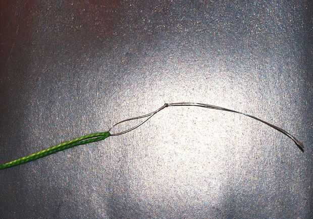 Para entrar en las cuentas en el hilo, utilizo varias horas buscando una aguja que sería adecuada, pero ninguno de los que tenía en mi casa salió bien. Así que decidí crear mi propia aguja de abalorios.
