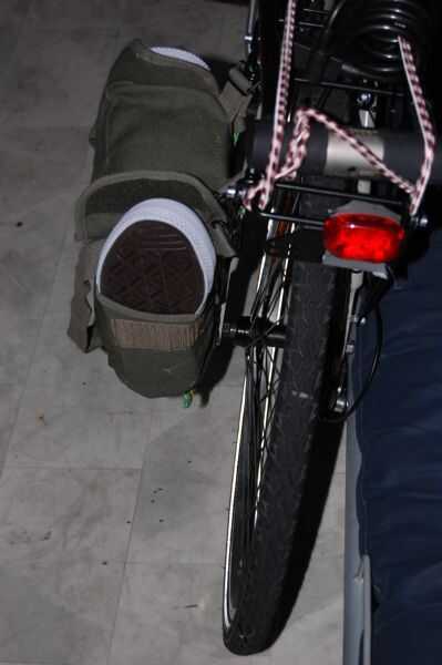 tienda compró bicicleta pannier chupar. Son ridículamente caros, incómodos de llevar y no son muy buenas para nada. Para la luz ir, no quiero tener a shell a una tonelada de dinero en efectivo para llevar cosas en un estante de bicicleta, a pesar de