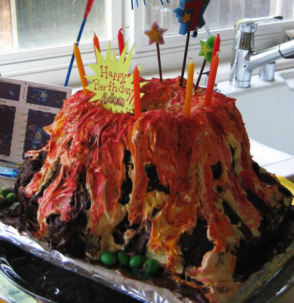 En primer lugar, las heladas la tarta entera con el glaseado de color base (marrón). Puede ir la luz en la parte superior donde va a ser la lava.