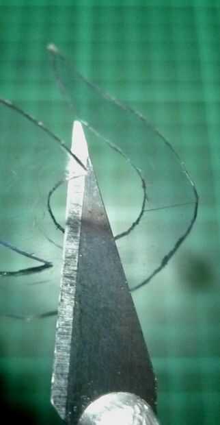 Use un cuchillo hobby con cuidado cortar pequeñas cantidades hasta llegar a la línea anotada.