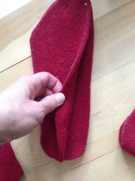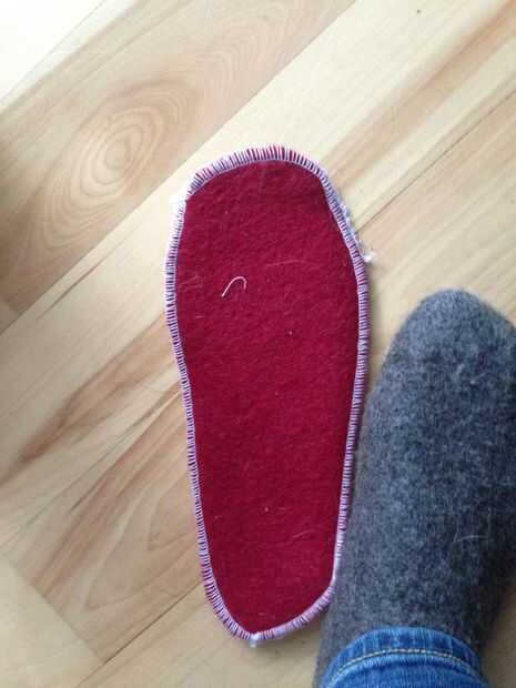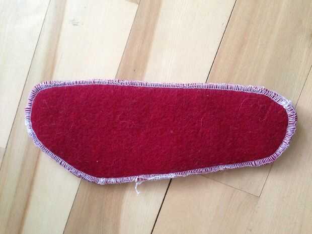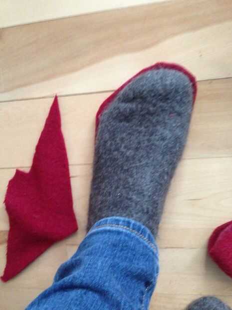 Colocar dos capas de tela de lana basta de lana en el piso. Soporte en su tela y trace una línea alrededor de su pie con el lápiz de tiza. Prender las dos capas de tela juntos y recortar una plantilla de capas doble. Repita para el otro pie.