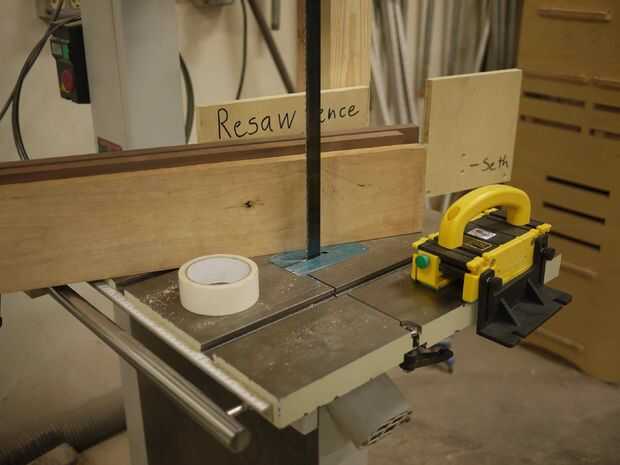 * Nota sobre la hoja de Sierra de cinta. He conseguido mejores resultados del uso de un ancho extra cantear-hoja. Desde Techshop proporciona las hojas, voy adelante y utilizar ellos. Para trabajadores con un presupuesto, también puede utilizar hojas de propósito más general para reaserrado, pero lleva más trabajo y paciencia para conseguir un buen corte recto. Voy a explicar más sobre la elección de la lámina en el siguiente paso.