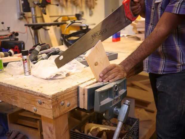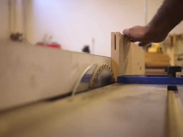 Un corte como este no se puede hacer uso de un protector de la hoja, vas a tener que quitarlo para hacer el corte. En lugar de un protector de la hoja, puede utilizar algo que se llama un cuña - un pedazo de metal el mismo ancho que la hoja que se encuentra justo detrás de la hoja. La cuña ayuda a evitar que la Junta pellizcando la hoja, después se corta separando las mitades separadas.