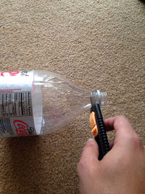 Cortar una botella de coca-cola de 2 litros para encajar el soporte de café