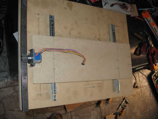 Aquí le damos algunas pruebas para el eje. La rejilla se está moviendo un poco, no es atornillado ni pegado en la base.