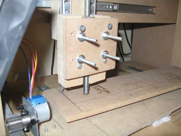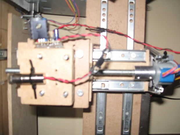 «Como hacer una mesa de trabajo CNC por qué no hacer interfaz de toolchanging en el pórtico. Fuente de 12V (controlada desde el puerto paralelo mediante el ULN2003) puedo utilizar para encender cualquier pequeña herramienta... No sólo láser..."