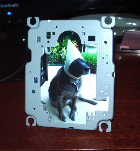 Ya que desmontar la unidad óptica más lento del mundo, me topé con esta pieza de aluminio y el pensamiento, "¡ Wow! Esto haría un marco realmente!"
