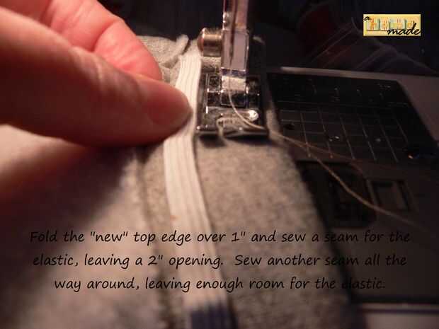 Puse una puntada de zig-zag alrededor de la parte inferior del poncho, que tire un poco más en cada extremo de la tela como fue se cose para darle un borde leve/faux lettuc. Luego doblar sobre el borde en la parte superior, cerca de 1" para hacer una cubierta para el elástico. No me molesto en terminar el borde porque no debilite la tela del paño grueso y suave. Cosa una costura alrededor del borde, dejando una 2" apertura para insertar el elástico. No te olvides de bloquear su costura y el principio y el final. Comience a coser costura otra vuelta (no requiere abrir) alrededor de la mitad de una pulgada de la costura original (yo usé 1/4" elástico para el cuello.) La segunda costura dará un borde de volantes en el escote una vez que se inserta el elástico. Introducir el elástico y coser la abertura.
