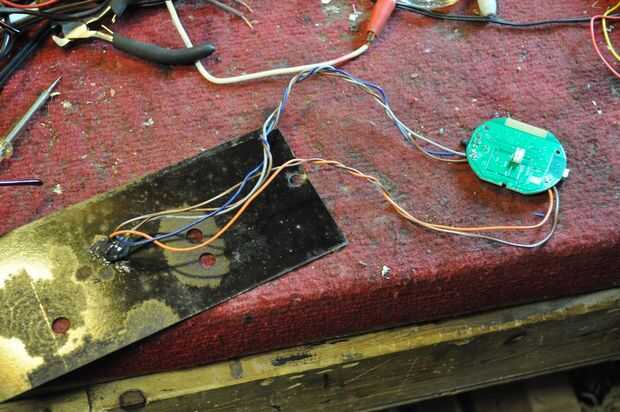 del altavoz de bluetooth Auvio 4000, tiene un LED de control rojo/azul y un LED rojo. lo que hice en mi proyecto fue en largos cables de soldadura y reubicar los LEDs a la cara de la radio. Los LED son sensibles a la polaridad así que seguro que al hacer esto, que realizar un seguimiento de qué cable va en que pata en los LEDs.
