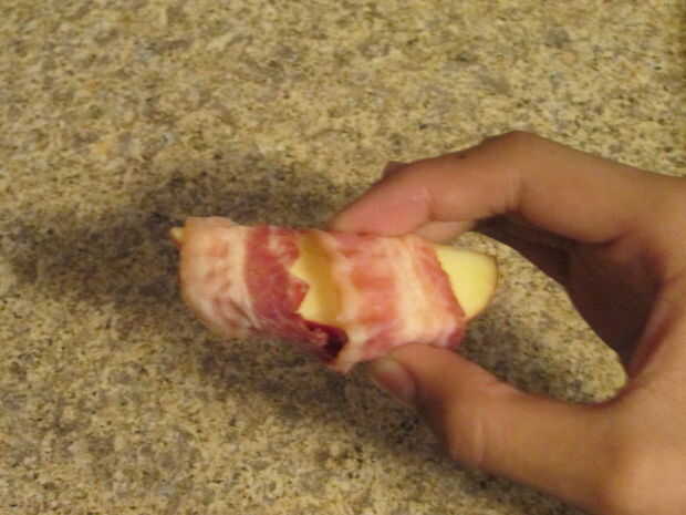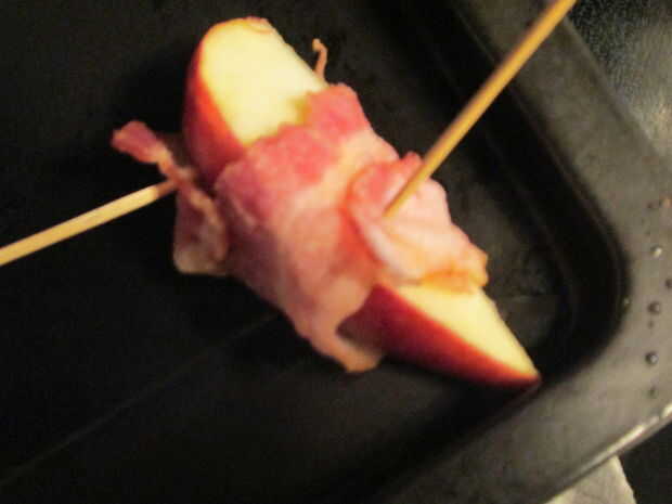 Rebanadas de manzana cubierto de tocino (7 / 10 paso)