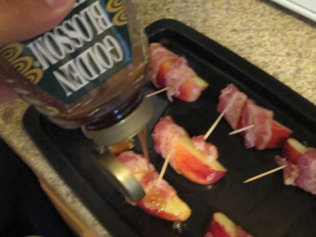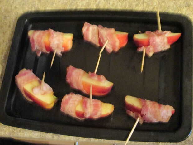 Rebanadas de manzana cubierto de tocino (8 / 10 paso)