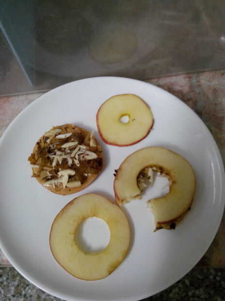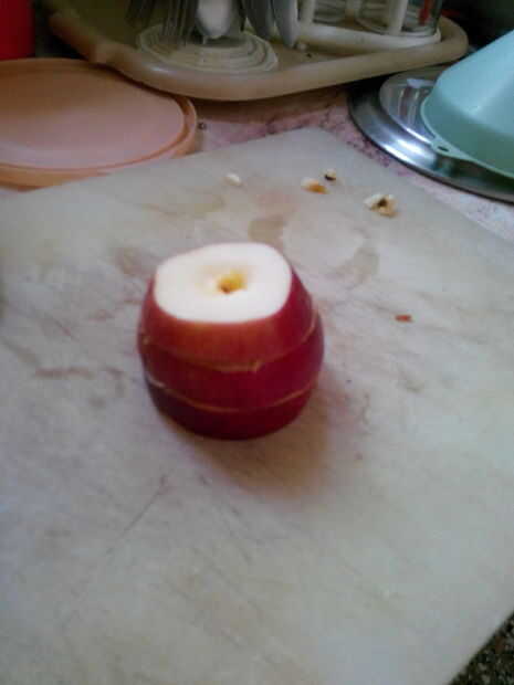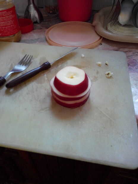 un divertido giro en un simple aperitivo.Paso 1: Para este aperitivo los únicos ingredientes que necesita son que necesita son las manzanas y mantequilla de maní.Paso 2: Gire hacia un lado las manzanas y cortarlas. Sacar de los centros de las rebanad