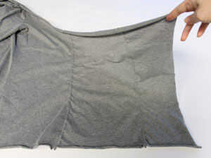 Oh, quiero saber algo extra limpio sobre estos tejidos camiseta elásticos? Usted puede darse una costura"acabada", por así decirlo, tirando de los bordes de la tela aparte, como tal. El borde con el enrollamiento en sí mismo, dándole un borde limpio y semielaborado con poco esfuerzo. Cool, ¿EH?