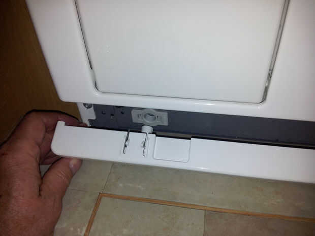Quitar el rodapié presionando los dos retenes situados cerca de 1/8 de la forma de cada lado.